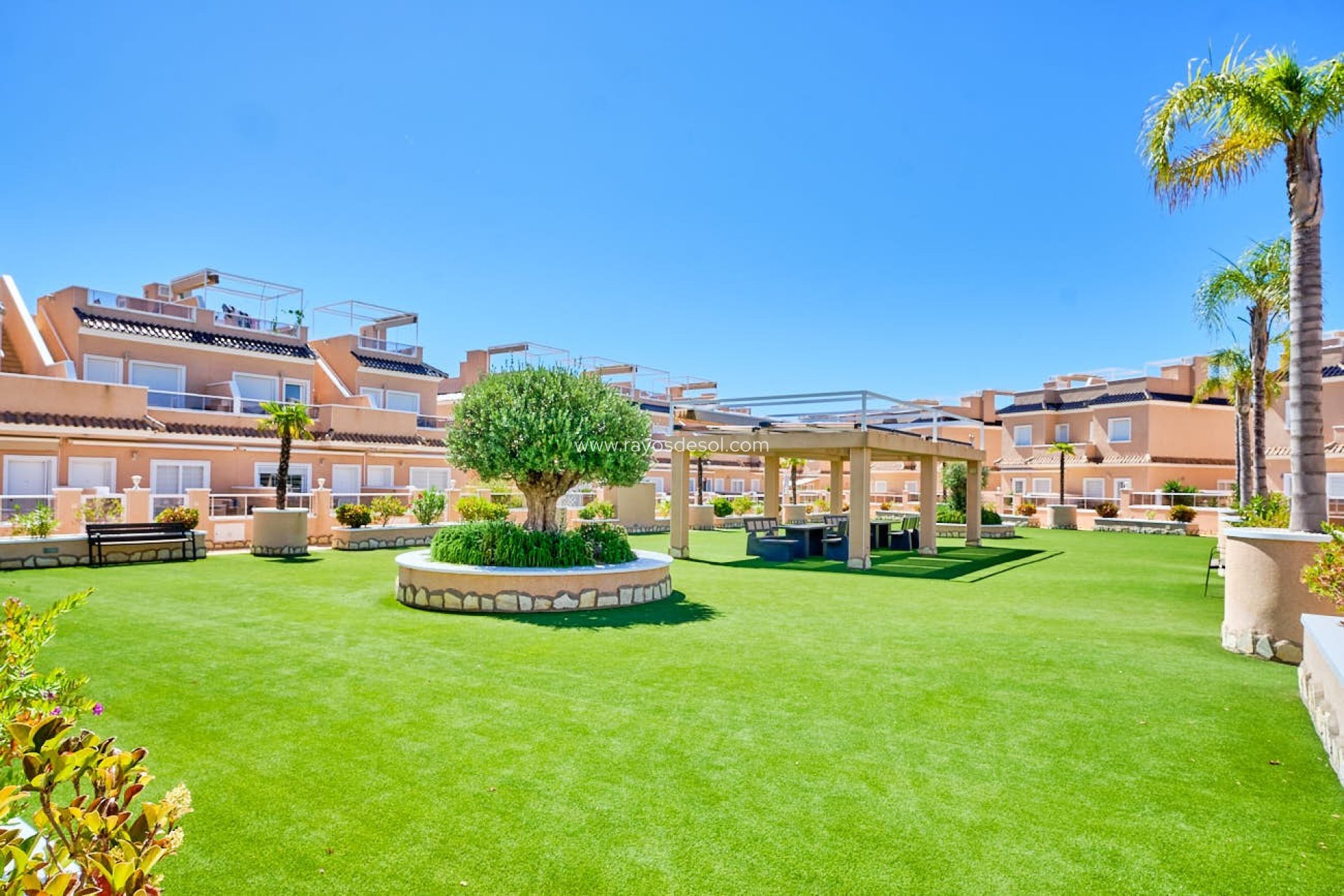 JaWillkommen in dieser modernen und geräumigen Wohnung in der beliebten Gegend Lomas de Cabo Roig, Orihuela Costa. Das Haus ist so konzipiert, dass es Komfort und Qualität in einer ruhigen und begehrten Umgebung bietet. Umgesetzter und praktischer Grundriss Die Wohnung besteht aus einem geräumigen Wohnzimmer mit offener Küche, die einen hellen und luftigen Wohnraum schafft. Die Küche ist mit einem praktischen Trinkwasserfilter ausgestattet, der sauberes Wasser direkt aus dem Wasserhahn liefert. Es gibt zwei geräumige Schlafzimmer, von denen eines über ein eigenes Bad verfügt. Beide Badezimmer sind modern und verfügen über Fußbodenheizung für zusätzlichen Komfort. Im Wohnzimmer ist ebenfalls eine Fußbodenheizung installiert, wodurch die Wohnung das ganze Jahr über komfortabel ist. Fantastische Außenbereiche Das Haus verfügt über zwei große Terrassen, die Ihnen optimale Möglichkeiten bieten, das spanische Klima zu genießen. Die Terrasse an der Vorderseite ist nach Süden ausgerichtet und perfekt, um den ganzen Tag über die Sonne zu genießen, während die Terrasse an der Rückseite Ihnen die Möglichkeit bietet, Schatten zu finden oder ruhige Abende zu genießen. Diese Terrassen bieten Ihnen viel Platz zum Entspannen und für gesellige Zusammenkünfte. Erstklassige Gemeinschaftsbereiche Der Komplex verfügt über zwei wunderschöne Swimmingpools, von denen einer beheizt ist, sodass Sie das ganze Jahr über schwimmen können. Darüber hinaus gibt es zwei große, gepflegte Grünflächen, die zum Entspannen und Erholen einladen. Diese Gemeinschaftsbereiche sind ideal für Familien oder für diejenigen, die einfach die friedliche Atmosphäre genießen möchten. Ideale Lage Lomas de Cabo Roig ist für seine strategische Lage bekannt, mit Supermärkten, Restaurants, Cafés und Geschäften in Reichweite. Die wunderschönen Strände von Orihuela Costa sind nur eine kurze Autofahrt entfernt und es gibt auch gute Verbindungen zu Golfplätzen und anderen Freizeiteinrichtungen in der Umgebung. Eine Wohnung, die Komfort und Qualität vereint Diese Wohnung ist die perfekte Wahl für diejenigen, die ein modernes und funktionales Zuhause in einer sicheren und angenehmen Nachbarschaft suchen. Mit seinen durchdachten Lösungen, den wunderschönen Gemeinschaftsbereichen und der Nähe zu Annehmlichkeiten bietet dieses Haus alles, was Sie zum Gedeihen brauchen – ob als Ferienmietobjekt oder ganzjähriges Zuhause. Lassen Sie sich diese einmalige Gelegenheit nicht entgehen – kontaktieren Sie uns für weitere Informationen oder eine Besichtigung!