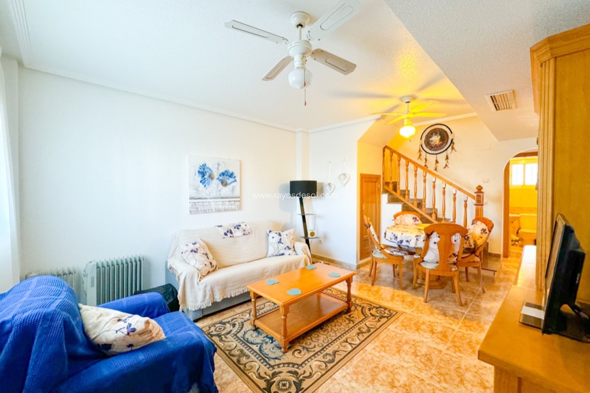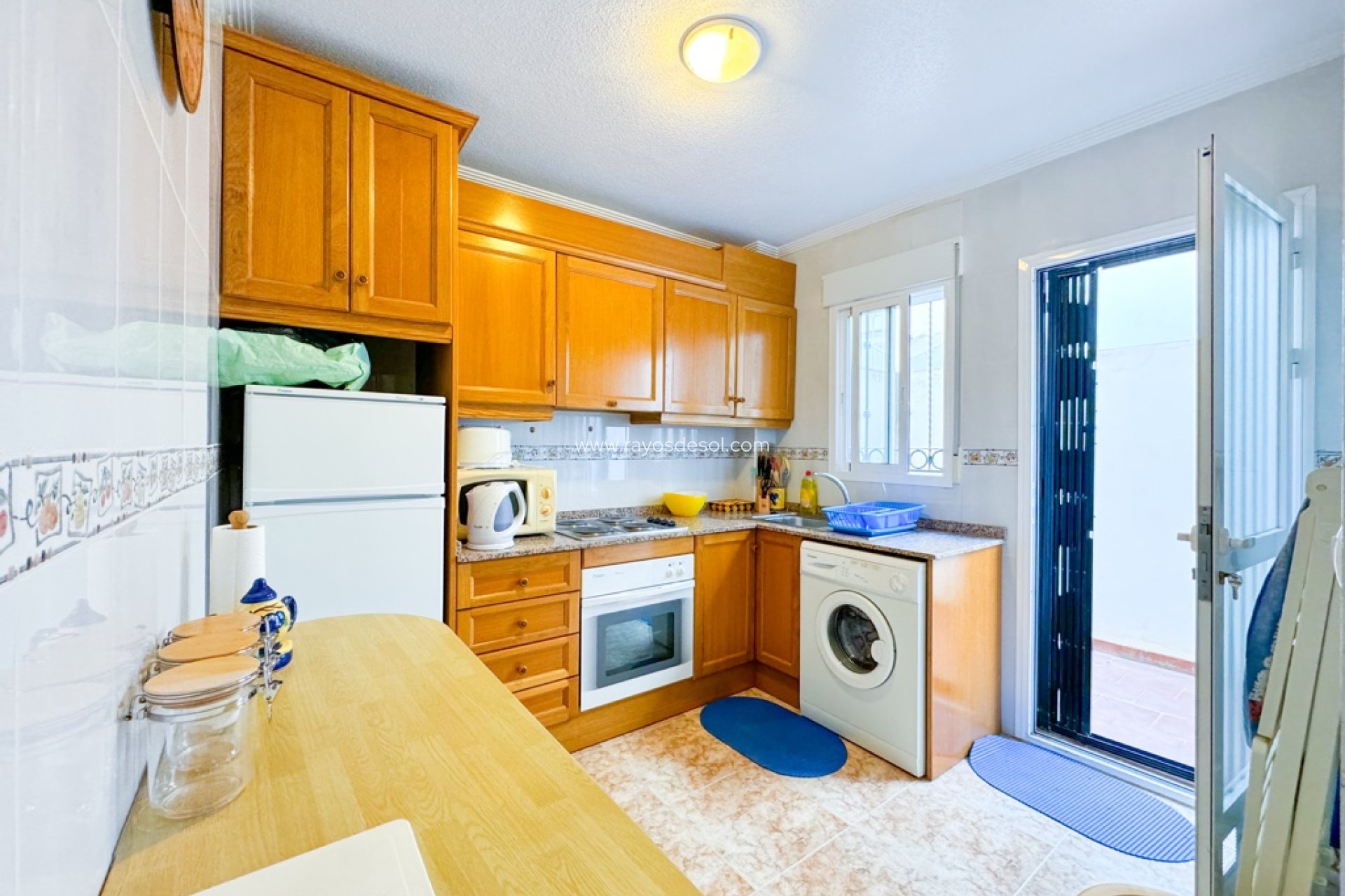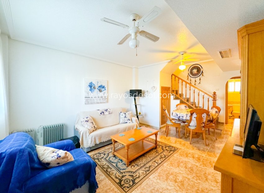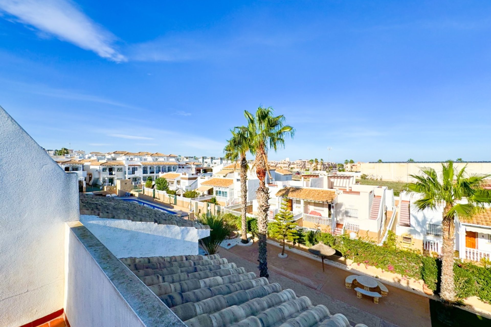 YesProperty for sale in the gated community Cinuelica R8 with patio, terraces and solarium, offering breathtaking sea view in Punta Prima within a walking distance to the beach and local amenities.Townhouse has 2 bedrooms, a bathroom and a guest toilet, separate kitchen with utility room, living room with dining area, two terraces and also private roof solarium. There is a very nice communal pool area . The house will be sold fully furnished and with the underground parking/Punta Prima is a typical Spanish seaside tourist resort, located on the southern Costa Blanca and less than 30 minutes from two international airports of Murcia´s ¨Corvera¨ and Alicante. The beaches, which are some of the cleanest around and have been awarded Blue Flag status, are complemented by a wonderful choice of shops, cafes, supermarkets, bars and restaurants.Punta Prima has a Mediterranean climate with 320 days of sunshine a year.