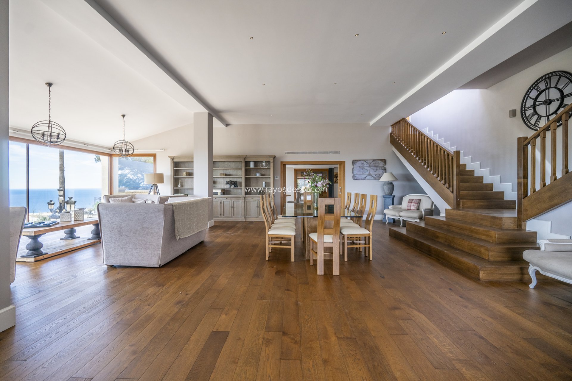 La segunda planta es donde la villa realmente brilla, ofreciendo un gran espacio de estar de planta abierta con ventanas de piso a techo que inundan la zona con luz natural. Estas ventanas ofrecen vistas panorámicas e ininterrumpidas del brillante mar Mediterráneo, el Mar Menor y La Manga Strip, creando una conexión perfecta entre el interior y el impresionante exterior.