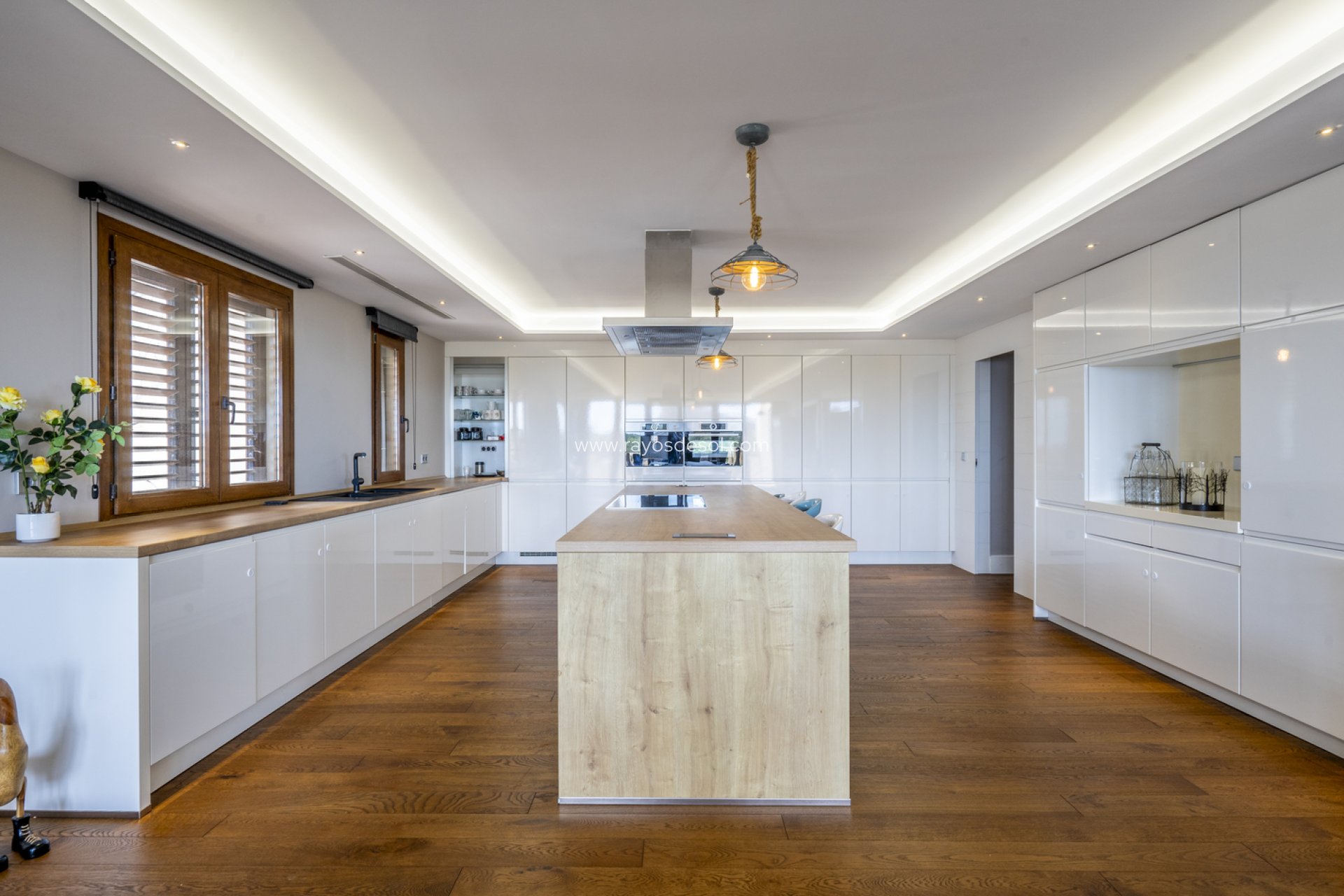 Este nivel cuenta con una cocina elegante y moderna, completa con electrodomésticos de alta gama y elegantes armarios, ideal tanto para comidas informales como para la cocina gourmet. El comedor, con su gran mesa, es perfecto para celebrar reuniones o cenas familiares, mientras que el lavadero adyacente, totalmente equipado, ofrece una funcionalidad práctica con mucho espacio de almacenamiento.