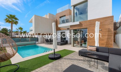 SíVILLAS PAREADAS DE OBRA NUEVA EN LA ZENIA Residencial de obra nueva de villas independientes y pareados en La Zenia, Orihuela Costa. Viviendas modernas construidas en 3 plantas, dispone de 3 dormitorios, 2 baños, cocina americana con salón, armarios empotrados, Aire Acondicionado por conducto, sótano, solarium, jardín privado con la piscina y plaza de aparcamiento. La Zenia se encuentra en la Costa Blanca Sur, justo al sur de la importante ciudad de Torrevieja. Este tramo de la costa es conocida como la Costa de Orihuela. La Zenia es un pequeño pero concurrido complejo turístico de playa. Tiene muchos restaurantes, bares, tiendas y buenas instalaciones debido al gran número de personas que viven aquí durante todo el año. Hay muchos bares irlandeses incluyendo el conocido Paddy's. La mayoría de los bares muestran Sky Sports y es fácil encontrar un buen desayuno inglés durante todo el día en uno de los muchos cafés y restaurantes. Centro Comercial La Zenia Boulevard podrá disfrutar de moda, ocio y restauración en un mismo lugar. Complejo situado a 40 minutos del aeropuerto de Alicante y a 1 hora del aeropuerto de Murcia - Corvera.