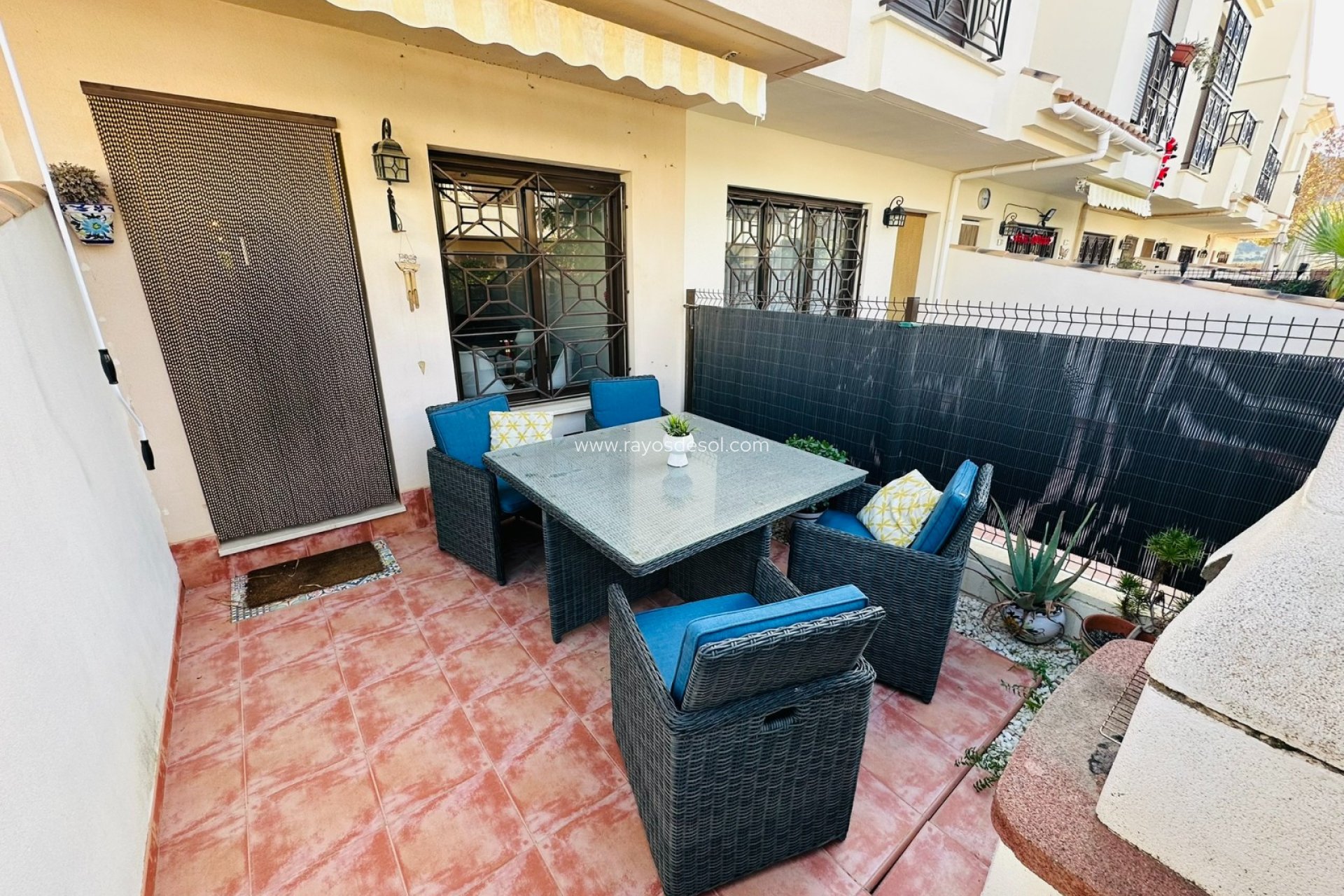 JaDeze geschakelde woning is gelegen op de beste community van San Cayetano. De afgesloten community beschikt over voldoende parkeergelegenheid voor bewoners en hun gasten, prachtige straatjes en een pas gerenoveerd zwembad waardoor het echte vakantiegevoel ontstaat. Een terras aan de voorzijde, achterzijde en bovendien dakterras zorgen ervoor dat u de gehele dag van de zon kunt genieten. Mocht u daar toch even geen behoefte aan hebben dan is er altijd wel een plekje om even bij te komen in de schaduw. Op de benedenverdieping vinden we de woonkamer, keuken en toilet. De woonkamer is voorzien van schuiframen. De keuken beschikt over oven en kookplaat met afzuigkap. Vanuit de keuken bereikt u via een deur het terras aan de achterzijde van de woning. Op de eerste verdieping vinden we 2 ruime slaapkamers. De master bedroom beschikt over inbouwkasten, schuifpui en balkon. De tweede ruime slaapkamer op deze verdieping heeft een grote inbouwkast. De badkamer op deze verdieping is voorzien van bad, toilet, bidet en badmeubel. Via een interne trap heeft u toegang tot het dakterras. Alle ramen in woonkamer en slaapkamers zijn voorzien van rolluiken en alle verblijfsruimten zijn voorzien van airconditioning. De woning wordt volledig gemeubileerd opgeleverd. De woning is gelegen op ongeveer 10 minuten van de stranden in en klein maar gezellig dorp met enkele restaurantjes/barretjes, supermarkt, apotheek, bakker, dokter, gym en gemeenschappelijk zwembad. Al deze voorzieningen zijn op loopafstand. De luchthavens van Murcia San Javier en Alicante zijn gelegen op 12 en 55 minuten en de locatie heeft een uitstekende ligging m.b.t. uitvalswegen.